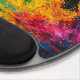 The plastic backing is nice and sturdy. The grippy pads underneath keep the mouse pad where I put it on my table. The pad the mouse sits on is cut well to fit the backing. The wrist pad is perfectly soft, supportive, and thick. I'm left-handed, and this mouse pad works just as well for me as it does for my right-handed friends. I'm the designer of HippieClecticHope products. I'm blown away by how well my intricate fractals turn out on the tangible items in the Zazzle Marketplace. This particular mouse pad ***appears*** like a 3D object... A mathematically-engineered rainbow black opal, inlaid under transparent fabric...