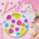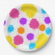 Brighten up your next party with these modern colorful paint splattered paper plates colored with blue, pink, orange, yellow and purple.