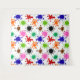 White background with black, blue, red, green, orange and brown paint splatters pattern.