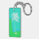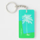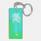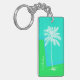 Stylish key chain, with graphics of a tropical white palm tree against a aqua, blue, and green abstract background, on both sides. Personalize the white text running up the left side. Great way to keep that Summer feeling with you all year.