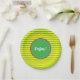 Entertain in style with colorful paper plates feat. stripes and the word "Enjoy!"