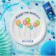 Cute Colorful Party Balloons Kid Birthday Paper Plates. Cute birthday party plates with four colorful balloons in red, green, blue and orange colors. Personalize the plates with your child`s name.