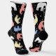 Red, yellow, blue and white pastel-colored elephants on a pair of black socks. A clear sign that you're ready for a little change in your daily routine. To see some great gray. Even if they're not as colorful in real life, the majestic elephants are always a great sight. Hit the zoo. Or, if your budget allows, take a trip to see them in a different environment. Until then, show your favorite animal on your socks.