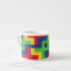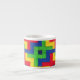 A colourful 'patchwork' design espresso coffee mug, in primary red, blue, green and yellow, from a photograph of a patchwork cot-quilt, handmade by Judy Adamson. A Teapot, Pitcher and Other Mugs with this design also available in my store.
