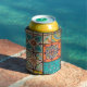 Colorful Patchwork Islamic Majolica Tile Can Cooler