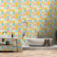 Enhance a baby girl's nursery or bedroom with this charming wallpaper, designed to create a cheerful atmosphere. This vibrant, pastel patchwork wallpaper, featuring a delightful pattern of blue, yellow, and pink, will brighten any space with its playful colors, fostering a joyous environment.