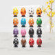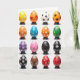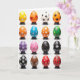 This design shows a neat 4x4 grid of sixteen decorated egg-shaped forms, each resting on a small dark stand against a white background. The orderly spacing feels like a tiny gallery where each egg gets its own quiet moment, like friends lined up for a group photo 🐰. Colors range across yellow, orange, blue, green, purple, and red, with touches of black and brown that add contrast. The matte surfaces carry a mix of white geometric shapes like snowflakes, dotted patterns with a slight shimmer, spring-like flower clusters 🌷, abstract swirls, and animal-style spots. The way the patterns “talk” to each other across the rows gives a gentle sense of togetherness, as if the designs are sharing glances from one stand to the next. There is no text on the front, leaving the focus on the artwork and the open white space around it. Soft, even lighting makes the edges and painted details look crisp, and each egg stands upright on its own dark base.
