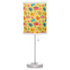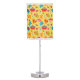 The lamp looks exactly like the picture, bright and colorful. The lamp shade is plastic not what I expected, however I love it! The printing is clear and the name can easily be read.
