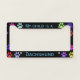 Colorful Paw Prints on Black License Plate Frame
