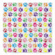 Cute and bright multi-colored paw prints on white background.