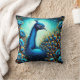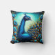 Colorful Peacock Among Vibrant Blue Flowers Throw Pillow