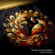 A vibrant peacock displaying its colorful plumage in a circular formation on a clean white background.
