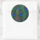 Colorful Peacock Feathers Etching Style Classic Round Sticker