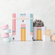 A playful and modern seamless pattern featuring bright and bold colored pencils in shades of pink, blue, and orange arranged in a neat, repeating vertical design. The light background contrasts perfectly with the vibrant pencils, giving the pattern a fun and creative feel, ideal for inspiring creativity and adding a pop of color.