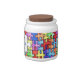 Colorful jigsaw patterned personalised candy jar.
