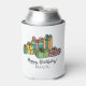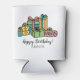 The Colorful Presents Happy Birthday Party print is great for a classic birthday look from a loved one, or from the company to staff or vendors, or you can personalize this card for an individual by just changing the text. You could change the from the birthday person's name to a 'From ___ Company' if you want. This colorful and delightful birthday print effortlessly blends a classic vibe with a modern and updated take. Radiating playful charm, the hand-drawn wrapped presents in teal, pink, orange, green, and yellow create a whimsical and lively atmosphere. Polka dot and stripe details add a touch of timeless elegance to the design. The cute script lettering, alongside a modern font, seamlessly combines, offering a perfect balance between classic and contemporary aesthetics. Overflowing with vibrant energy and charm, this print captures the timeless joy of a birthday celebration with a refreshing and updated twist. Modern Trendy Cute Colorful Happy Birthday Can Cooler