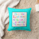 Colorful aqua throw pillow with Scripture verse from 2 Timothy 4:17 (But the Lord stood with me and gave me strength). Personalize with your name, if desired.