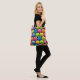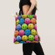 A fun colorful tote bag for pickleball lovers. This design has a colorful assortment of pickleballs in colors or fuchsia, yellow, blue, orange and green on a black background.