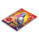Pigeon with vibrant plumage sits gracefully amidst an array of colorful flowers, against a radiant background, creating a vivid and artistic composition full of life and charm.