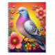 Colorful Pigeon Surrounded by Vibrant Flowers Notebook