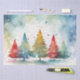 Colorful Pine Trees are vintage watercolor paintings is in three forms that occur together in our Merry Christmas wrapping paper set. As tissue paper, this one shows a group of whimsically colored Christmas trees. In the spirit of the holiday, we can have brightly colored yellow, green, or blue trees as well as green ones! They fit into a modern Christmas, too. The cute collection of trees are happily out on peaceful snowy woodlands hillsides.