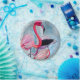 Beautiful colorful watercolor art from original painting by Sacha Grossel of pink and orange flamingos against a sky blue water background. Pretty flamingo art.