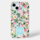 Colorful Pink Flower Garden Monogrammed Case-Mate iPhone Case