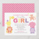 Colorful Pink Jungle Animals Girl Shower Invitation