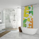 Enhance your bathroom decor with this vibrant shower curtain featuring a striking design in green, yellow, and black. The bold colors create a lively atmosphere, making it a perfect focal point for any bathroom. Crafted from high-quality, water-resistant fabric, this shower curtain not only adds style but also ensures durability and easy maintenance. Transform your bathing experience with this eye-catching accessory that combines functionality with artistic flair.