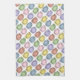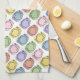 Colorful kitchen towel dotted with plates, knives and fork illustration.
