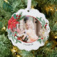 Colorful Poinsettia, Pine & Berries Photo Ornament Card