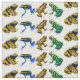 Original fine art pattern of colorful little poison dart or arrow frogs by artist and designer Carolyn McFann of Two Purring Cats Studio printed on quality and customizable fabric for frog and other herp fans.