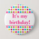Blue, green, yellow and pink polka dot It's my birthday button with the text in a pink.