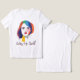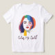Stunning pop art portrait of a woman with piercing blue eyes and vibrant multicolored hair. Her bold red lips and abstract patches of color add a modern, dynamic feel. This vibrant and stylish artwork is perfect for anyone who loves unique, contemporary designs with a splash of color.