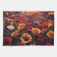 A vibrant expanse of poppies unfolds in a breathtaking array of deep orange, rich red, golden yellow, and regal purple, creating a harmonious tapestry of color that sways gently with the breeze.