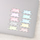 Colorful shaped, clear (or white) stickers with text only. Use for return address or business advertising. Add your own text, up to four lines, with a business name, contact, website, etc. and use as envelope seals, on giveaways, products, or for thank you notes and gift tags. Also good for making unique return address labels. One “sticker” contains ten address stickers. Your individual stickers will be sized according to the size of the sheet: The four or six inch sheets are probably best, and the largest sheet will make the text separate. Check your text in the preview and be sure it does not get close to the edge of the sheet. Bright, various colors are used. To change the text color, use the "customize further" area.