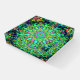Highly colorful psychedelic mandala with intricate shapes and patterns.