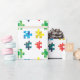 A brightly colored puzzle piece design wrapping paper for any occasion.