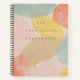 Multi-color note book featuring the quote, See Possible Everywhere. A colorful combination of abstract shapes in pink, green, yellow and red shades with gold faux color elements. Take notes, write down sayings, quotes and inspirational words. Kimberly Brett.