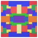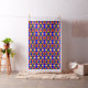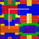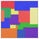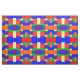 This colorful fabric features a patchwork quilt design in rainbow colors with a textured look.