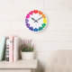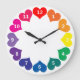 Colorful Rainbow Color Hearts on White Large Clock