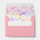 This envelope interior has a festive rainbow colorful confetti with template return address on the back flap. Fill in the template fields with your information, remove any text or edit using the design tool to select a font style, size, and color you like.