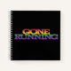 Bright and colorful Rainbow effect 'Gone Running' notebook . Perfects accessories for runners. Features my Gone Running artwork which shows a digitally created rainbow effect on a black background. Great gift for anyone who loves running. Transfer this design onto other products - please contact me if you need any help doing this . Take a look around my store to find other fitness related products.
