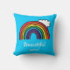 Cute personalized colorful rainbow illustration throw pillow. The reverse has a cloud pattern. You can even customize the background to their favourite color. Designed by Thisisnotme©