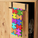 Jigsaw puzzle pattern in colorful rainbow colors.