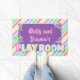 A delightful entry mat personalized with your child’s name (or children), perfect for the entry of a playroom. Customizable with any name and room title, this design features bright rainbow colors that add a joyful and sweet touch to their special space.
