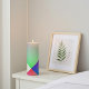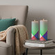 The pillar candle features an elegant and vibrant geometric design, showcasing the colors of the rainbow. Whether used for home decor or a dinner evening, this colorful candle adds a cozy and aesthetic touch to your space and moments.