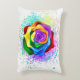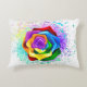 Large, blooming rose with rainbow petals on white background, painted over with splashes of colorful, bright paint. 3d