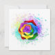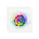 Large, blooming rose with rainbow petals on white background, painted over with splashes of colorful, bright paint. 3d