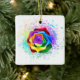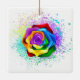Large, blooming rose with rainbow petals on white background, painted over with splashes of colorful, bright paint. 3d